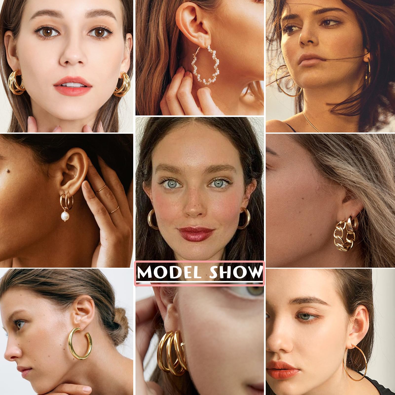 - Earingings for Women Set:This women earrings set includes 36 pairs different styles earrings, such as kinds of different stylish chunky hoop earrings, triple earrings, heart earrings, pearl earrings, kink earrings, gold hoop earrings and stud earrings, with different shapes and styles, which will make you stand out every day.