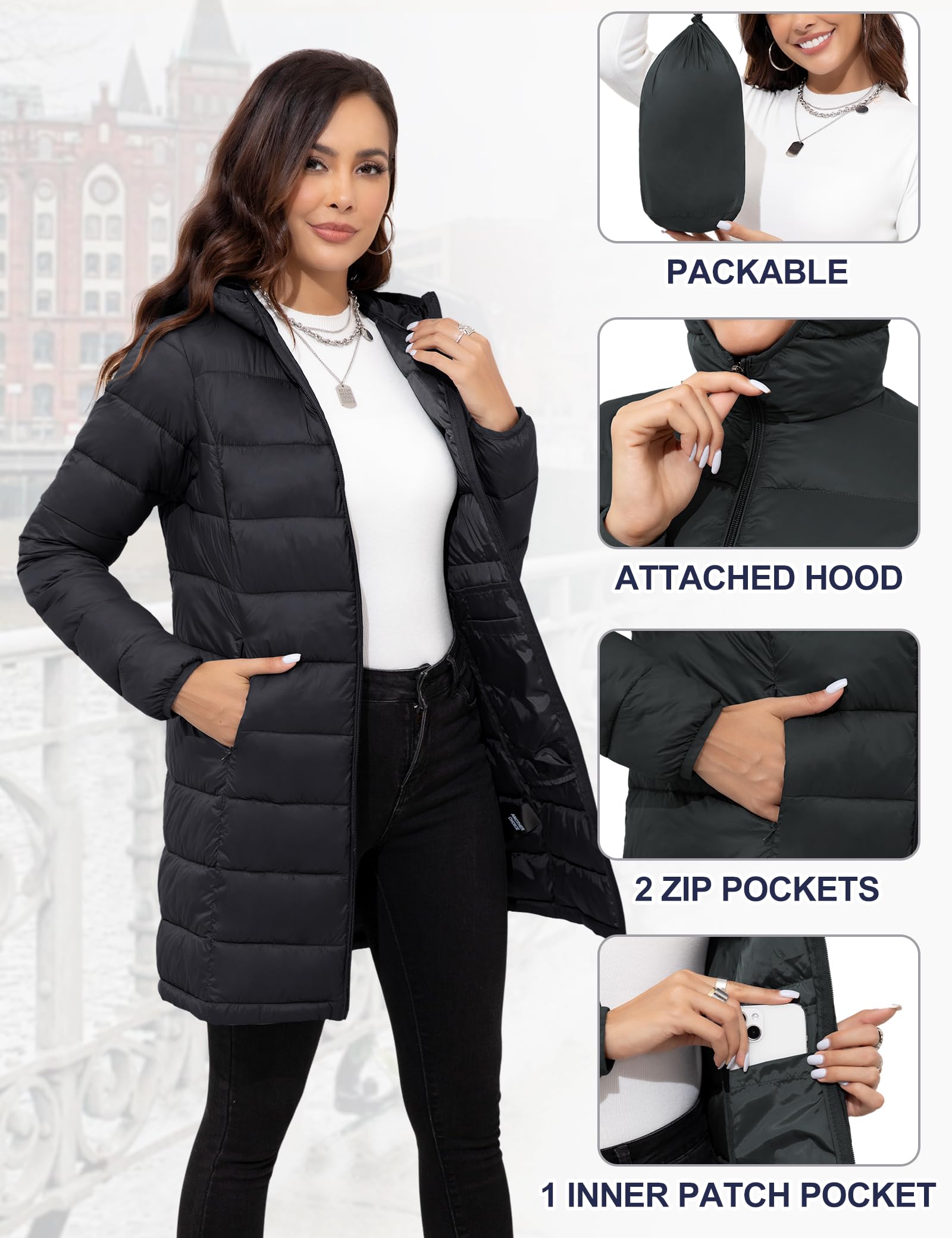 ANOTHER CHOICE Women Packable Puffer Jacket Lightweight Hooded Puffy Jacket (Black, XL)
