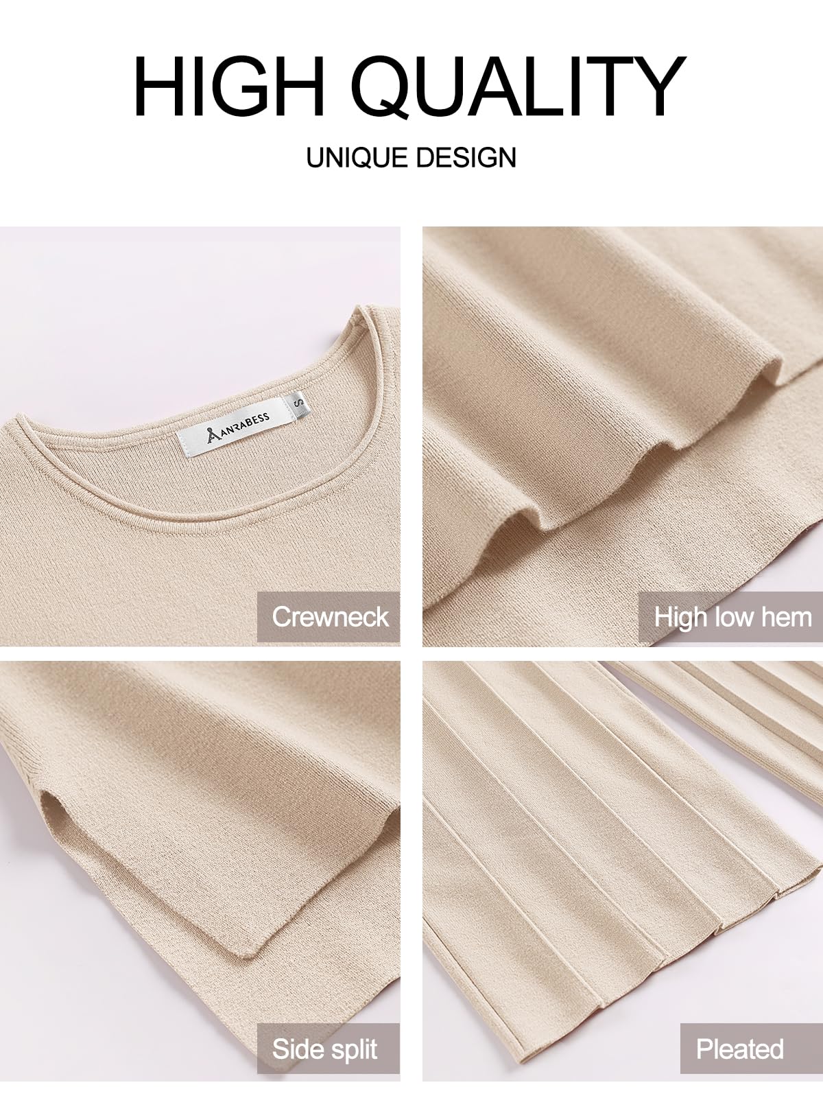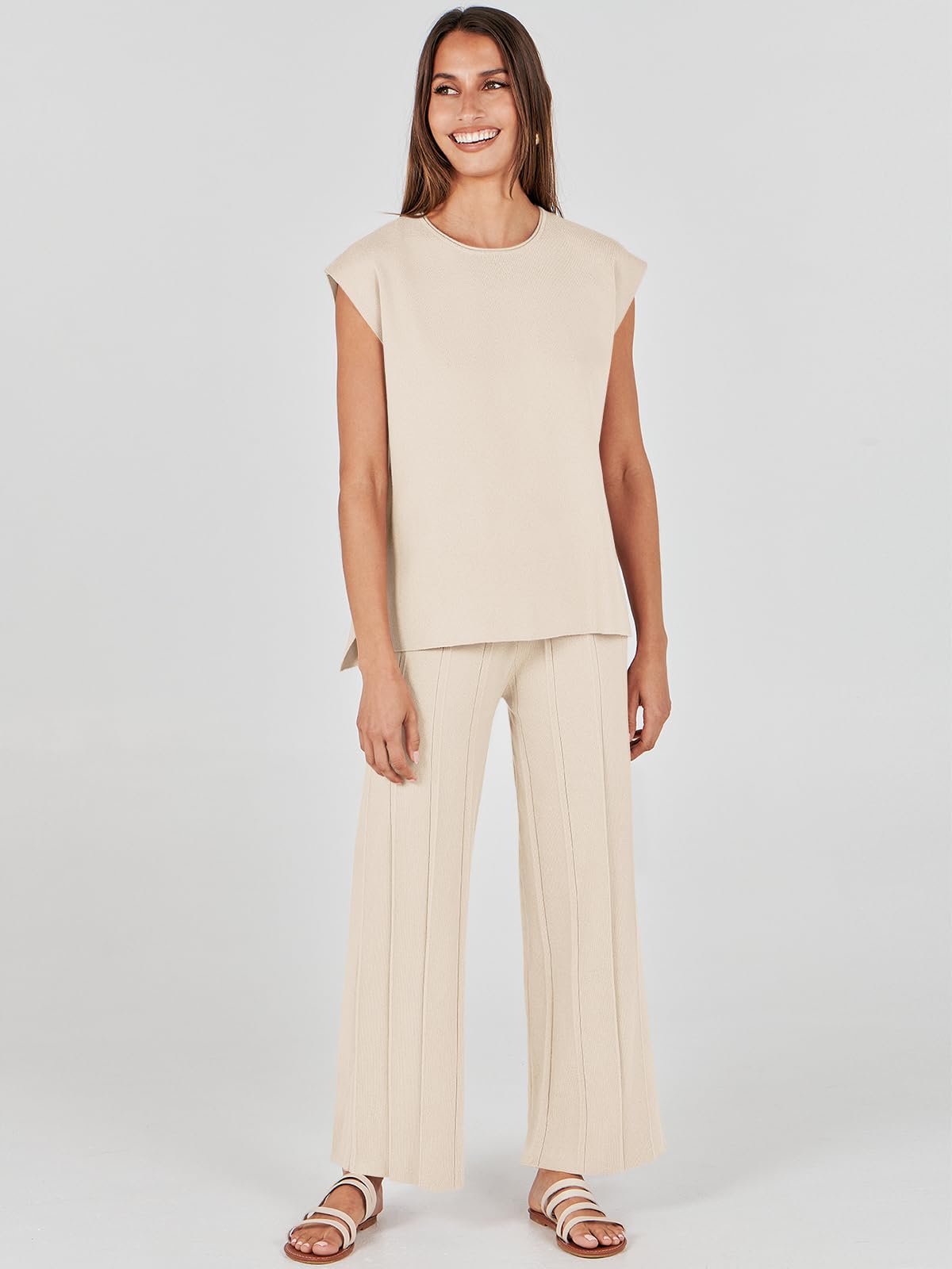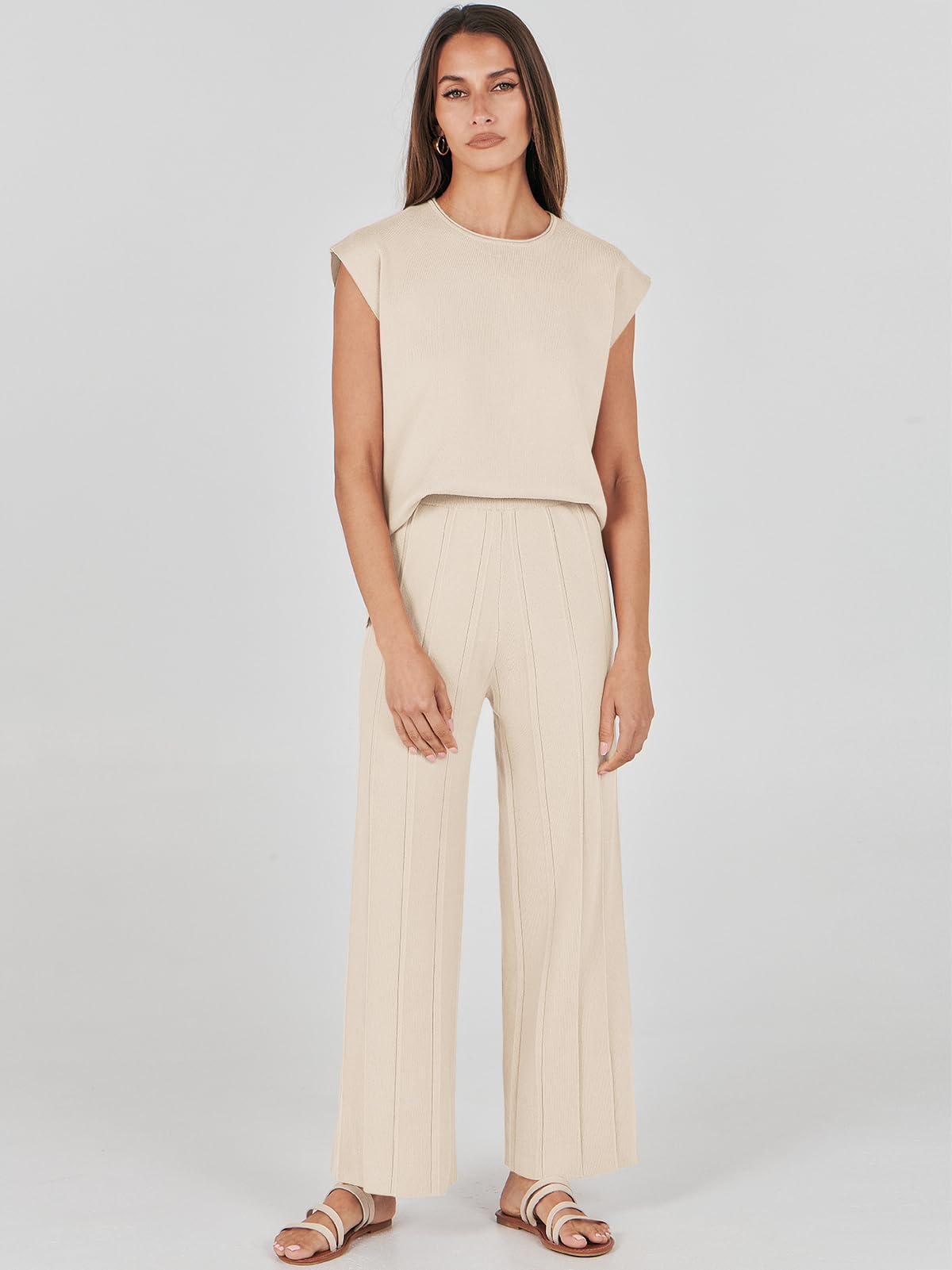 ANRABESS Women 2 Piece Outfits Casual Summer Sleeveless Tops Knit Pants Sweater Lounge Matching Sets 2024 Trendy Clothes Apricot Medium