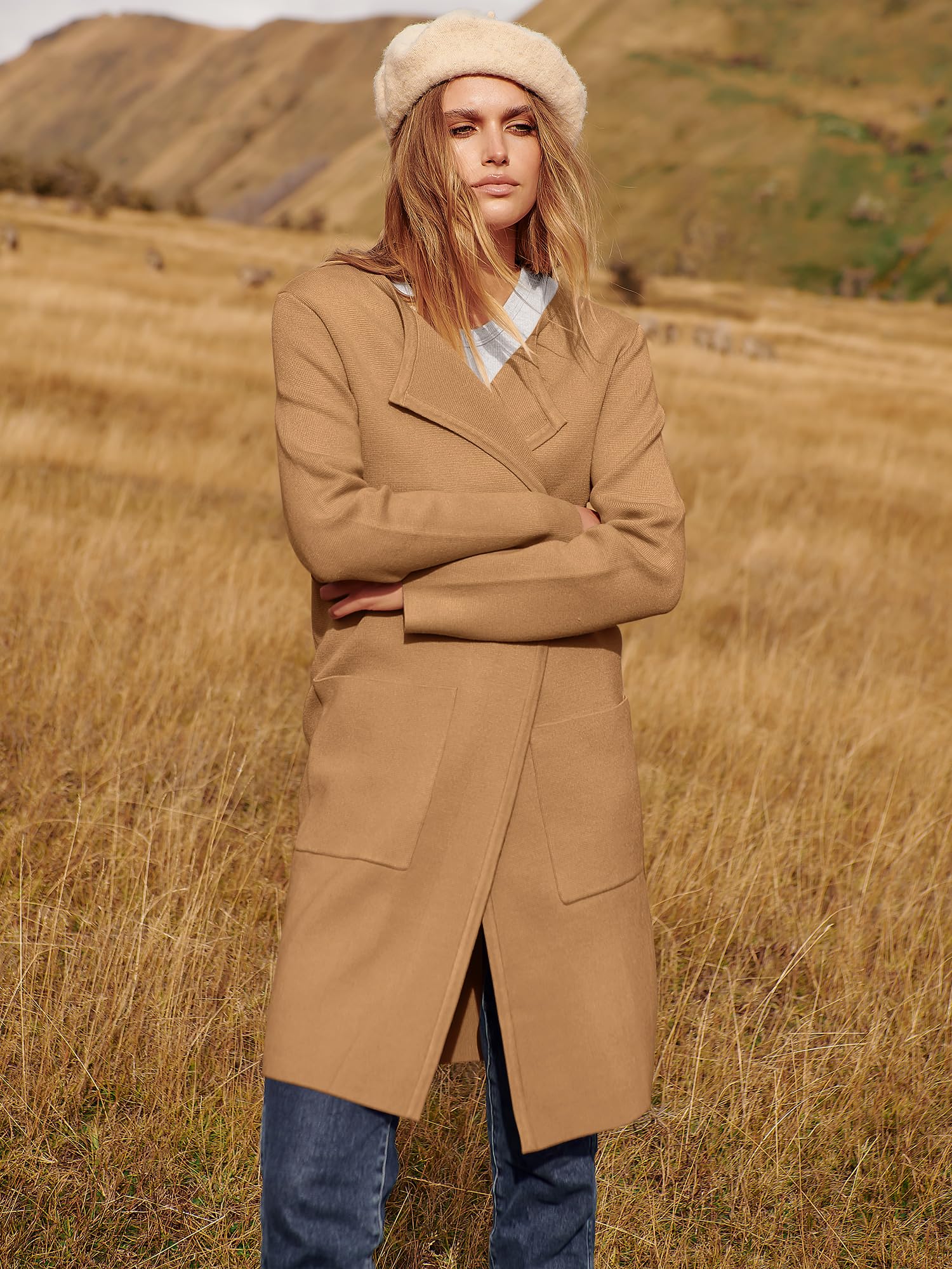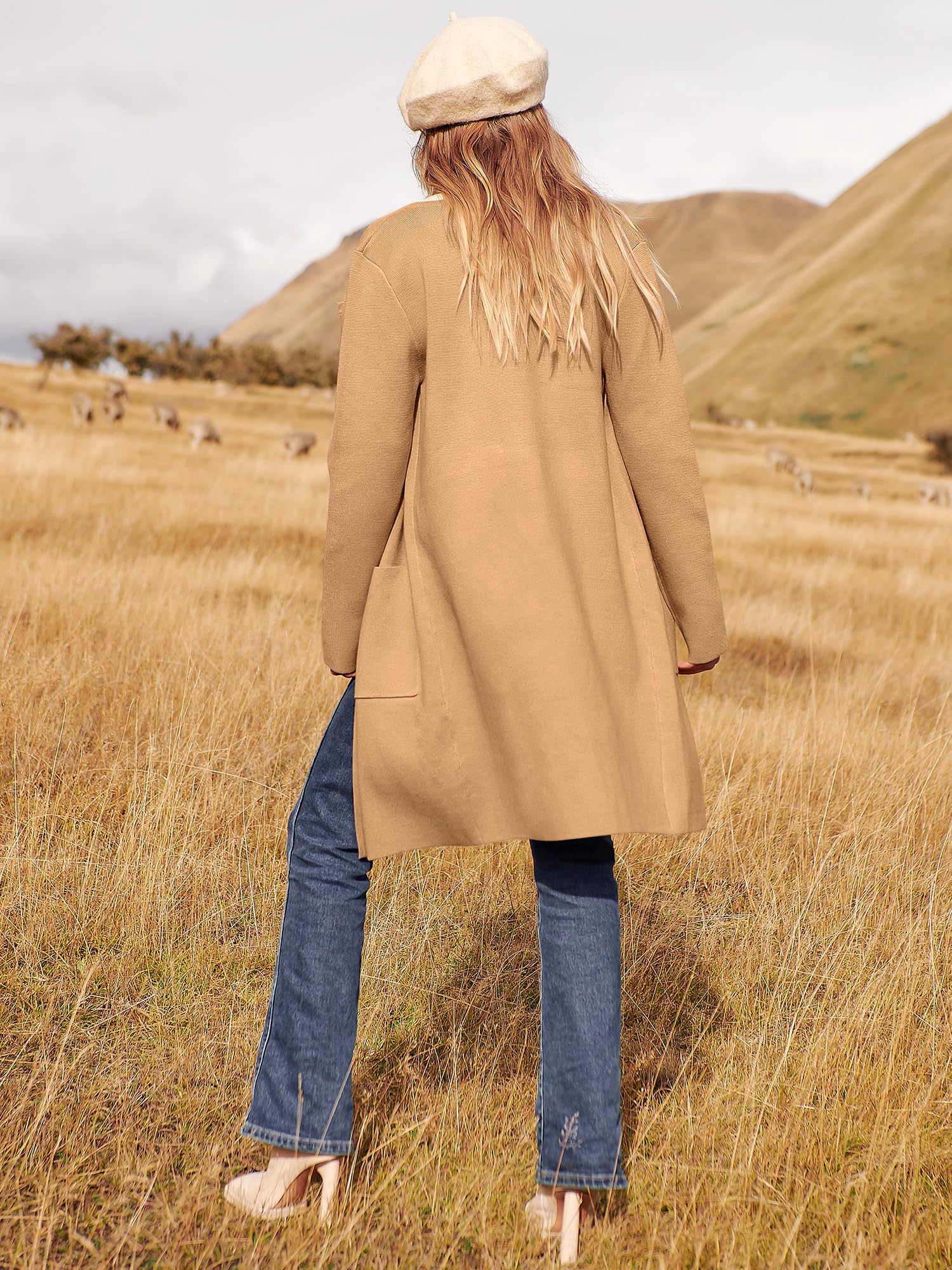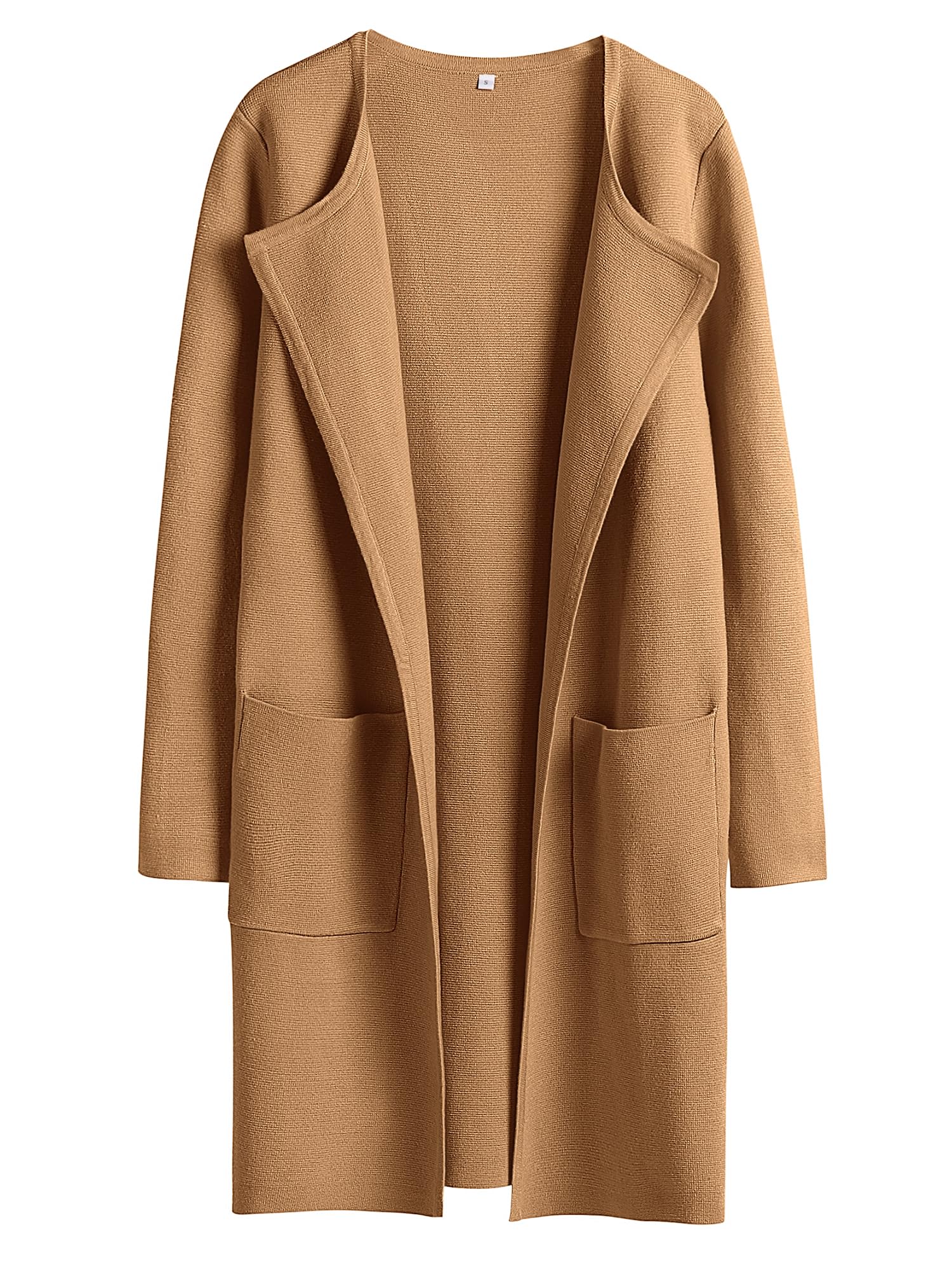 ANRABESS Women's Open Front Knit Lightweight Cardigan Casual Long Coatigan Sweater Lady Jacket Coat 2024 Fall Outerwear Light Brown Medium