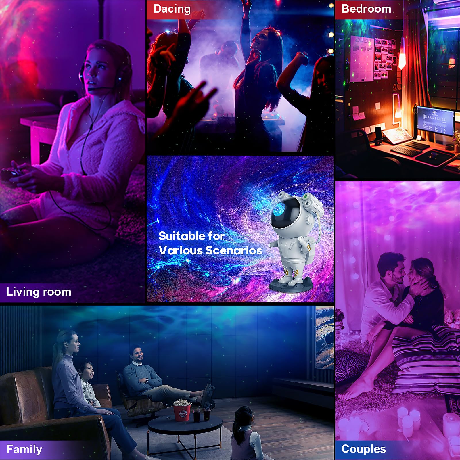 - ✨【Astronaut Galaxy Star Projector】This astronaut projector with cute and unique appearance - astronaut. It has many different color settings and combinations create and will create a magical atmosphere by projecting a whole universe directly on the ceiling transforming your bedroom, office or any other room into an enchanting outer space, a must have for any space lover.