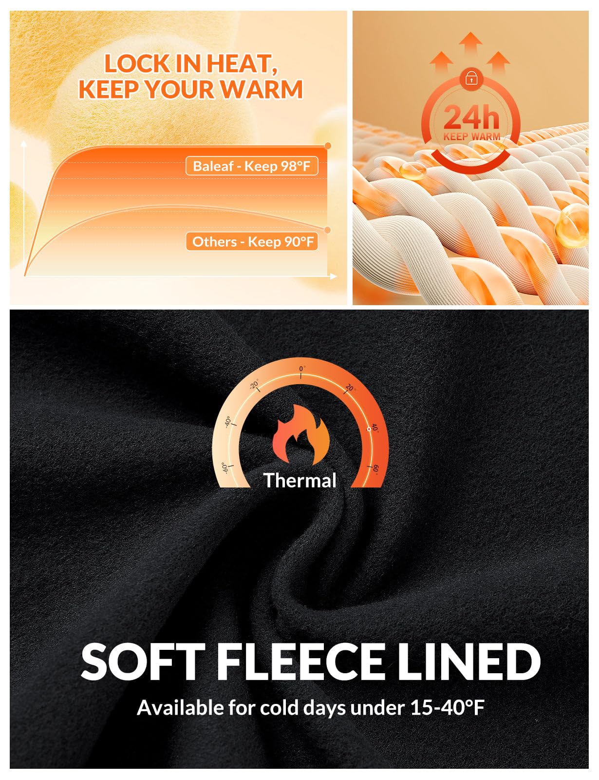 - Fleece Lined Warm Fabric: Stay Warm with Fleece Lined Yoga Pants! Made with thermal brushed lined fabric, not bulky but enough to locks heat to keep you 24 hour warm and laid-back silhouette redefine your comfort zone. Don't let the cold weather hold you back from hitting the trail. Perfect for cold days under 15-40°F.