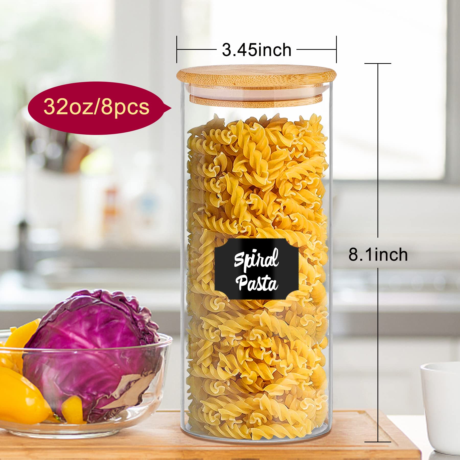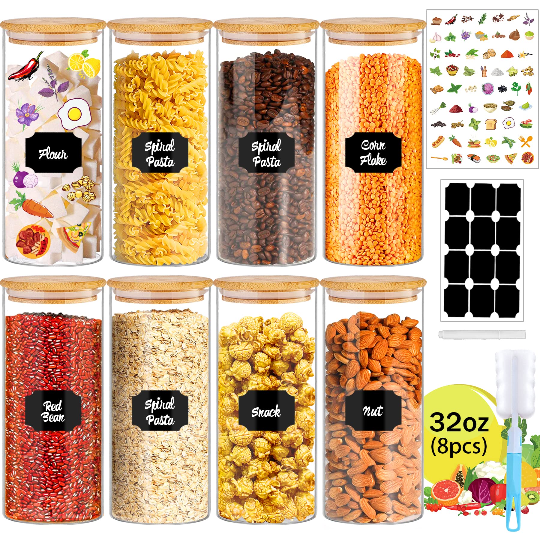 BGraceyy Glass Jars with Bamboo Lids for Kitchen, 32 oz 8 Pcs Airtight Pantry Storage Containers for Rice, Candy, Sugar, Flour, Nuts, Cookie, Coffee Bean