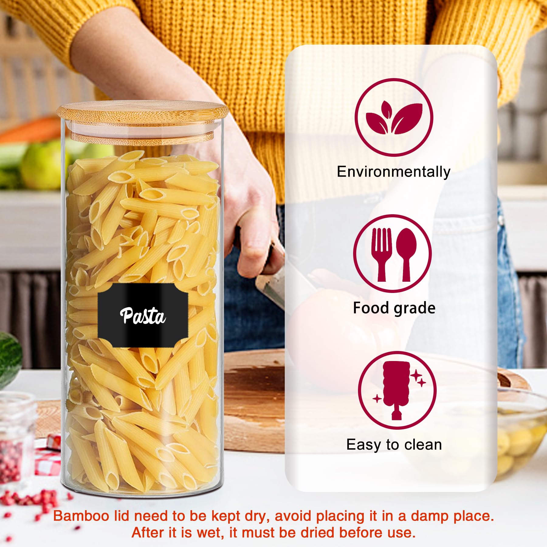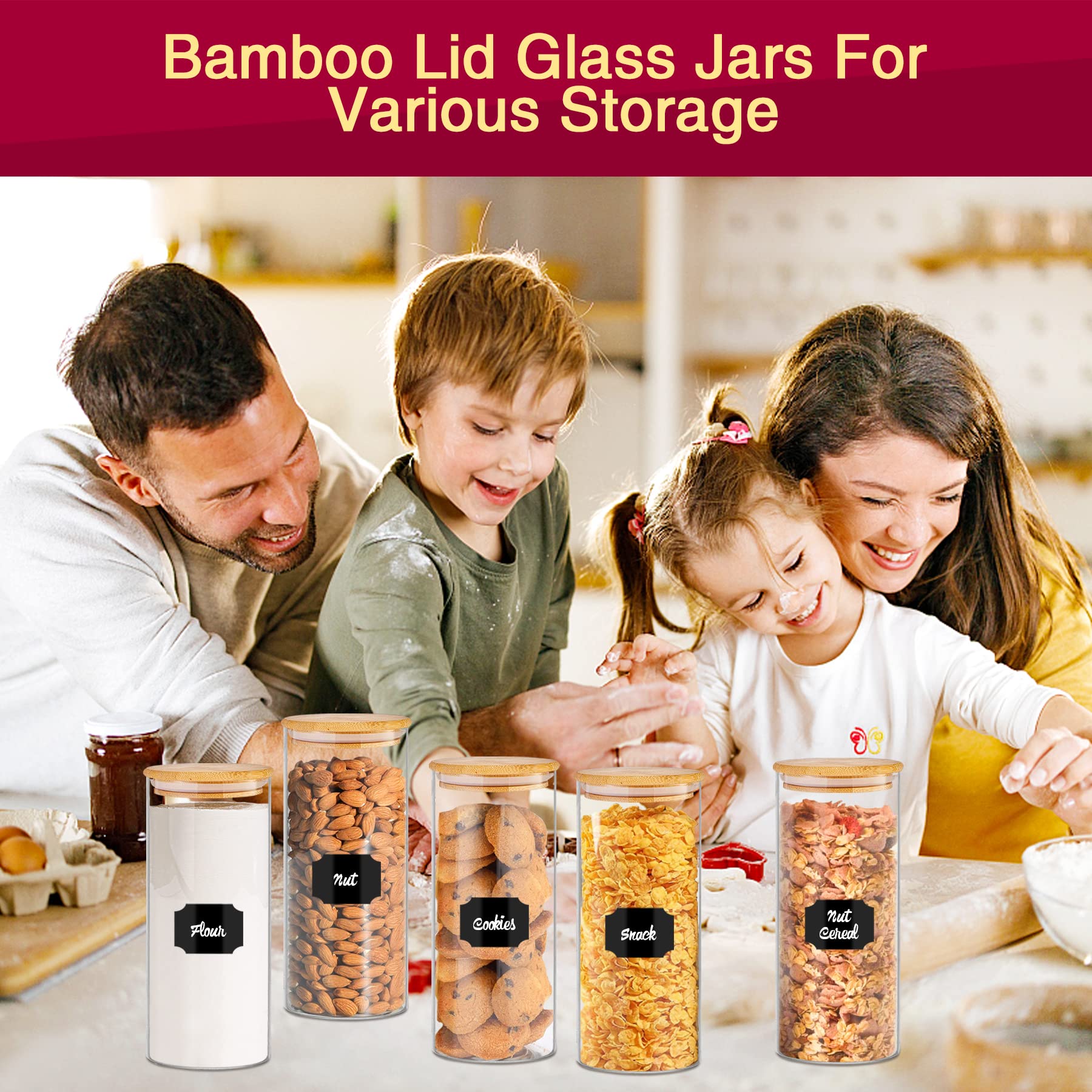 - 【Morden and Elegant Pantry Jars】: The transparency of the glass jars with bamboo lids allows you to see what is stored inside, allowing you to tell exactly what you need when cooking or baking, saving you time. And the transparency of glass containers with bamboo lids can reflect the color of what you are storing, giving your kitchen a neat and attractive color. I think the bamboo jars with lid are the best gift for a housewarming, very practical and charming!