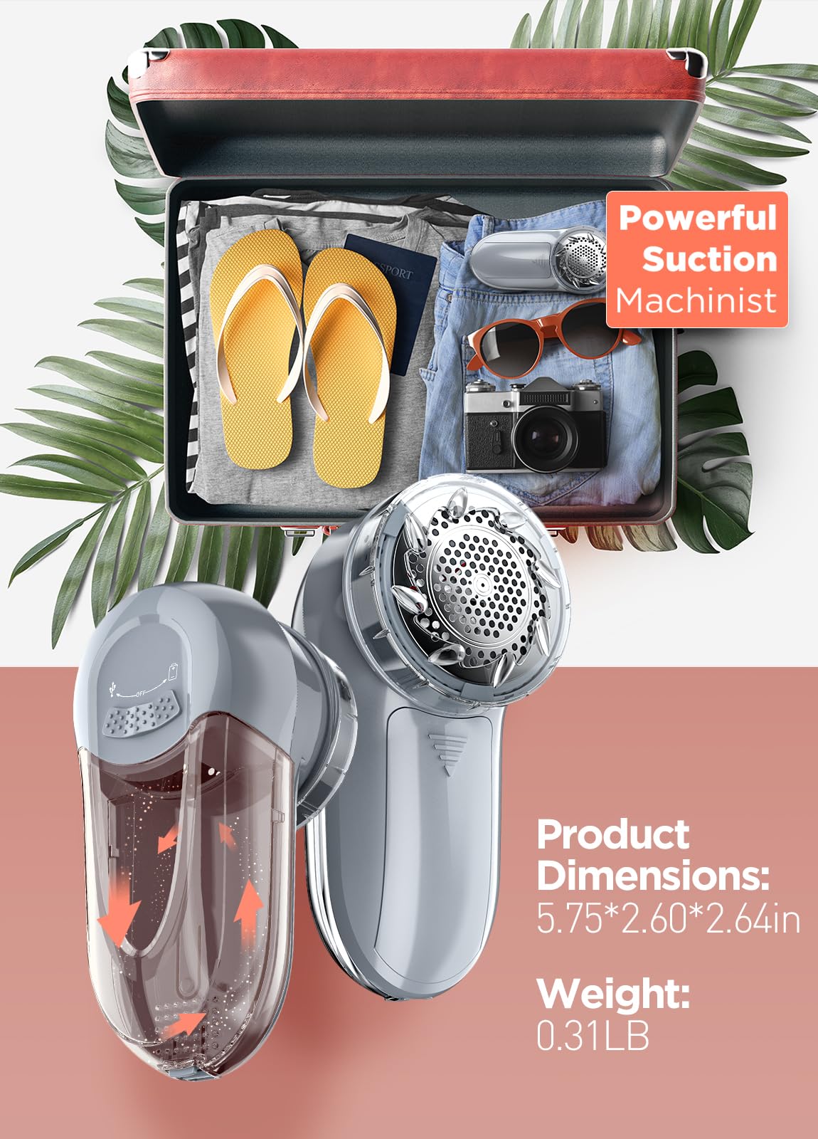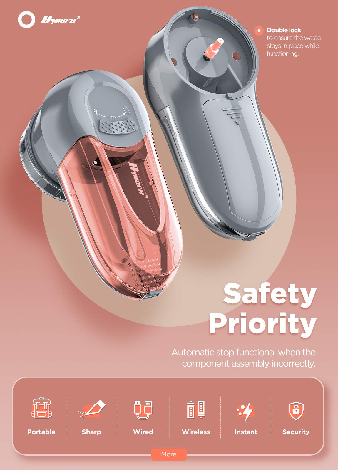 - Secure Sweater Shaver Container: Double lock container to prevent waste falling while using