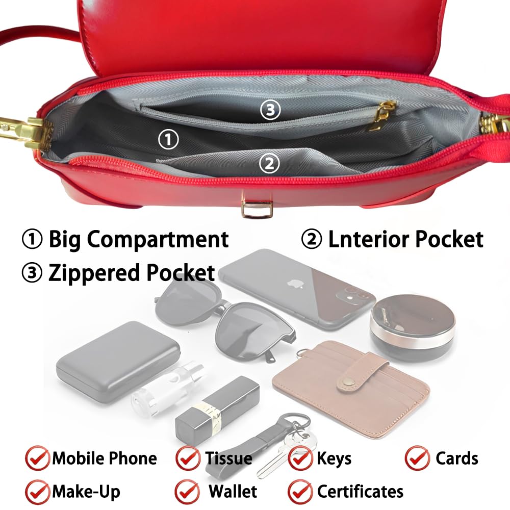 - 【Size】:The red purse dimension measures 11x3.7x4.5 inches (LxWxH); The handle length is 11 inches; Weight 0.83lb, easy to wear on your shoulder.Perfect Size for Women.Please allow 1 inches size error due to manual measurement.