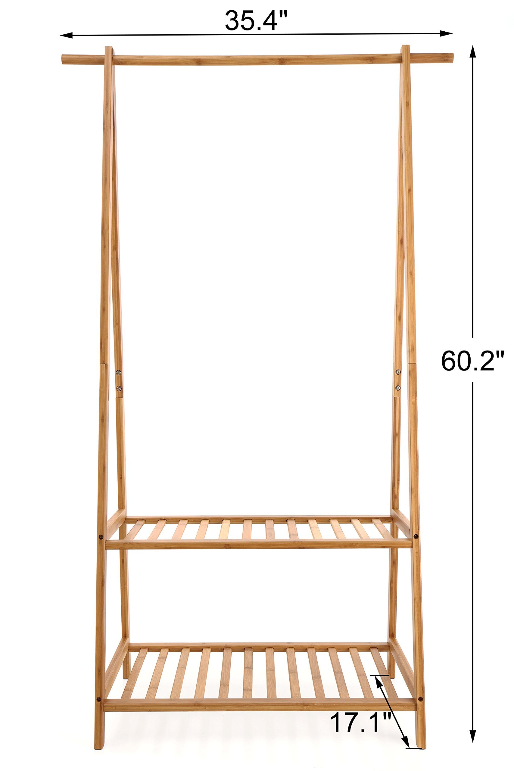Finnhomy Bamboo Clothes Rack Portable Extra Large Garment Rack 2-Tire Storage Box Shelves For Entryway and Bed Room Patented Design