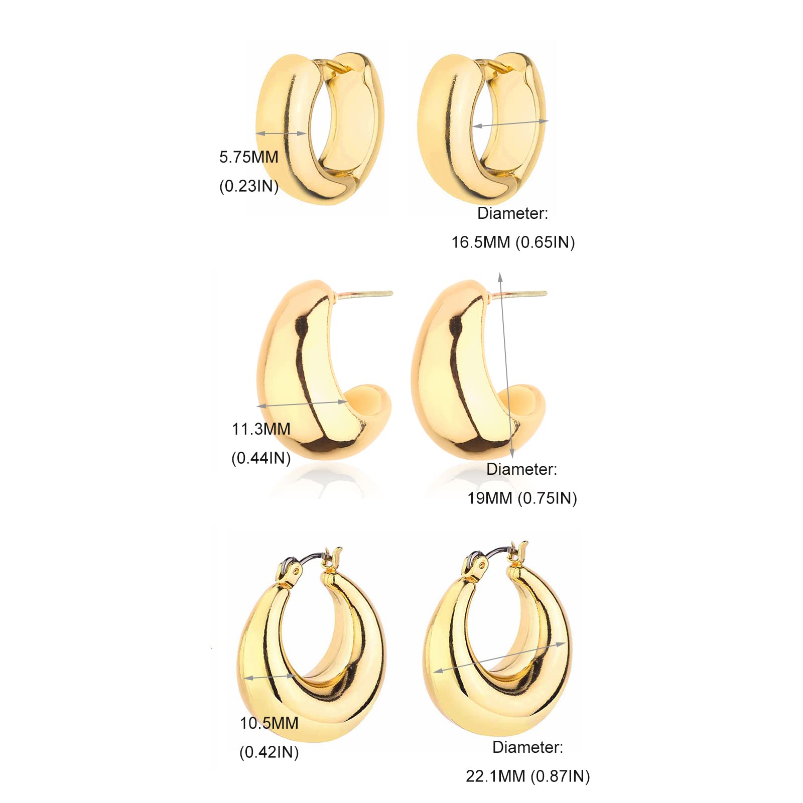 - ❤ Never Outdated: Chunky gold hoop earrings are never goes out of style, you can match them as you like, and suitable for daily wear and any special occasion.