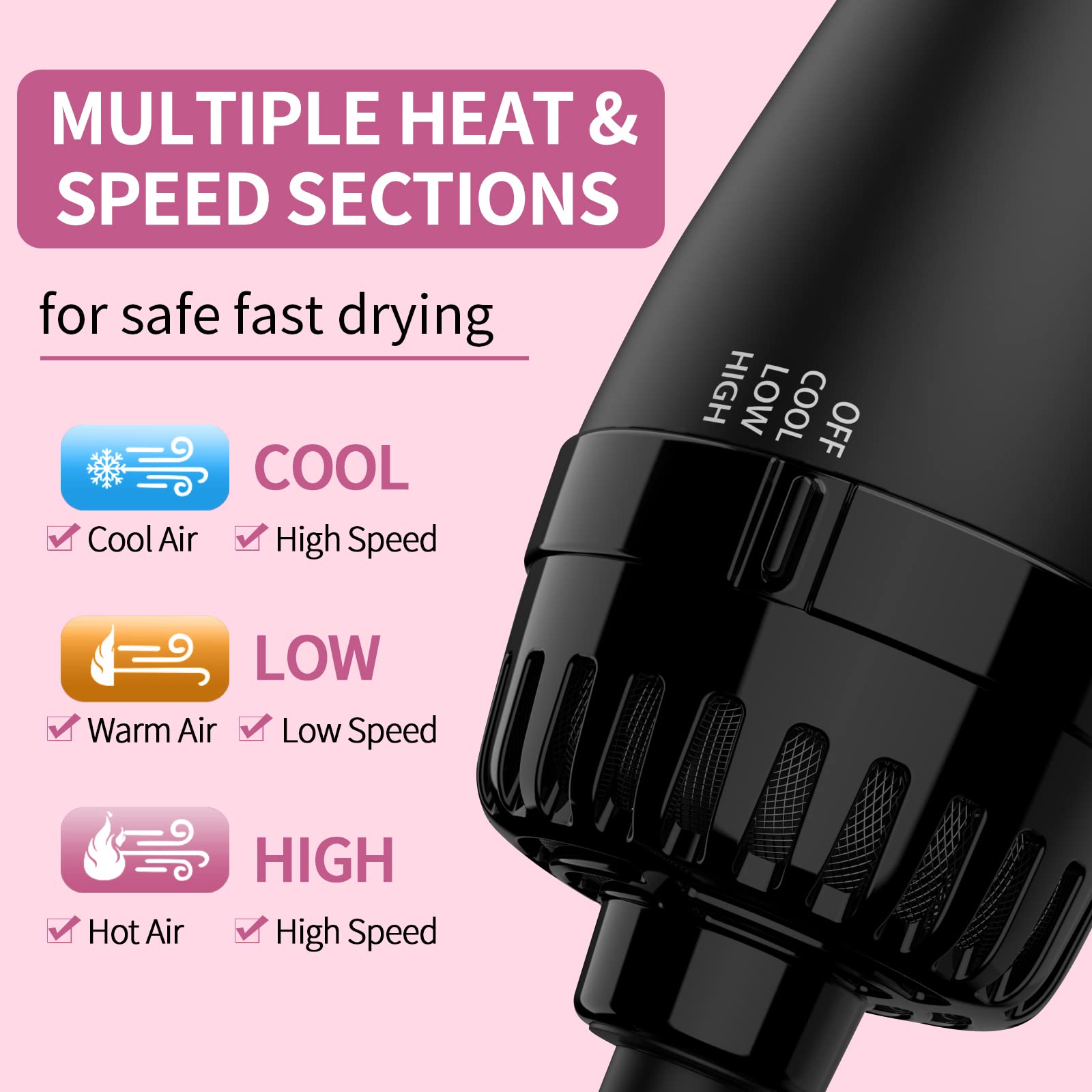 Hair Dryer and Blow Dryer Brush in One, 4 in 1 Hair Dryer and Styler Volumizer with Negative Ion Anti-frizz Ceramic Titanium Barrel Hot Air Straightener Brush 75MM Oval Shape, Black/Pink