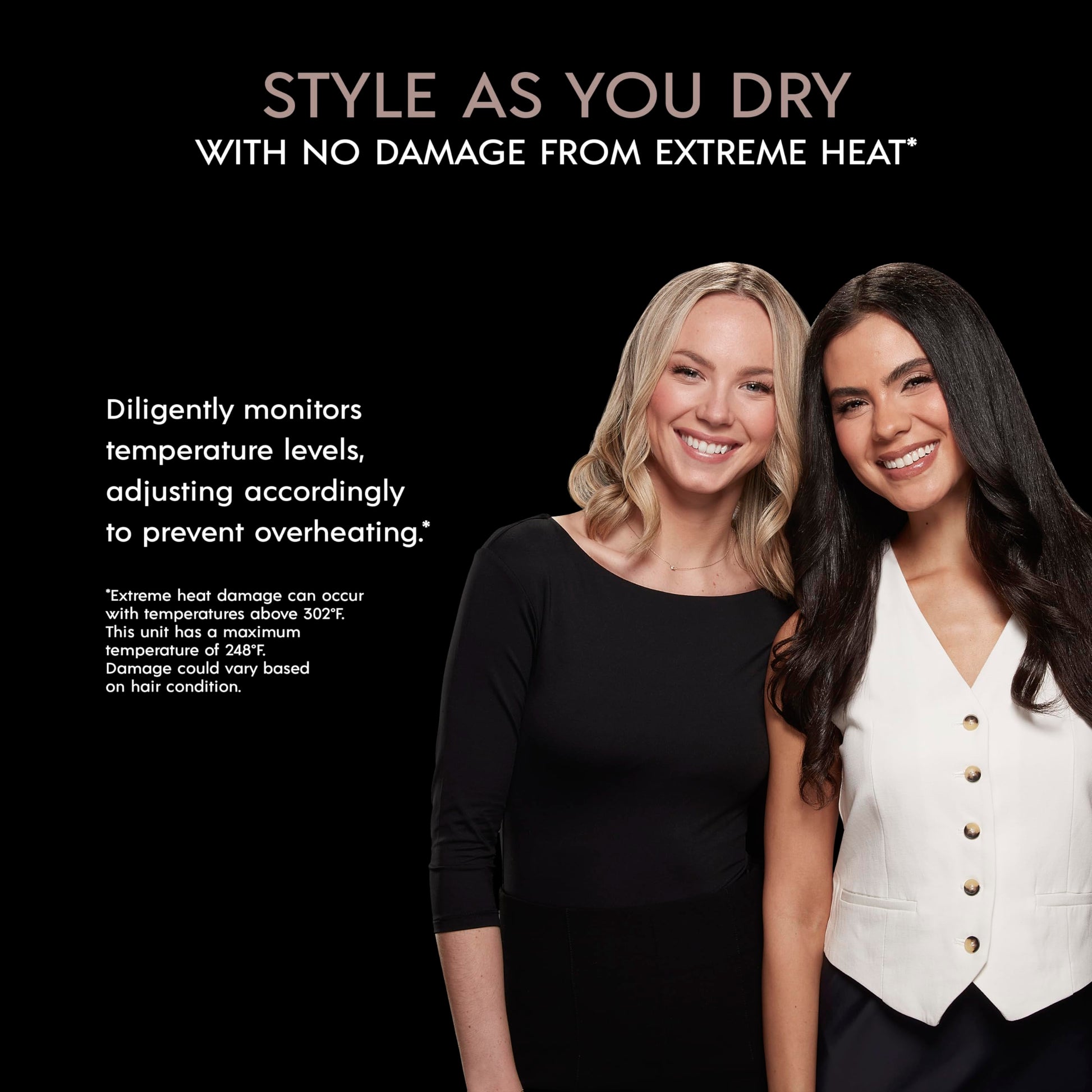 - No Heat Damage and Less Frizz: Thanks to ceramic technology which provides even heat to eliminate damaging hot spots for healthy-looking, shiny hair. The Internal ionic generator diffuses conditioning ions to minimize frizz.