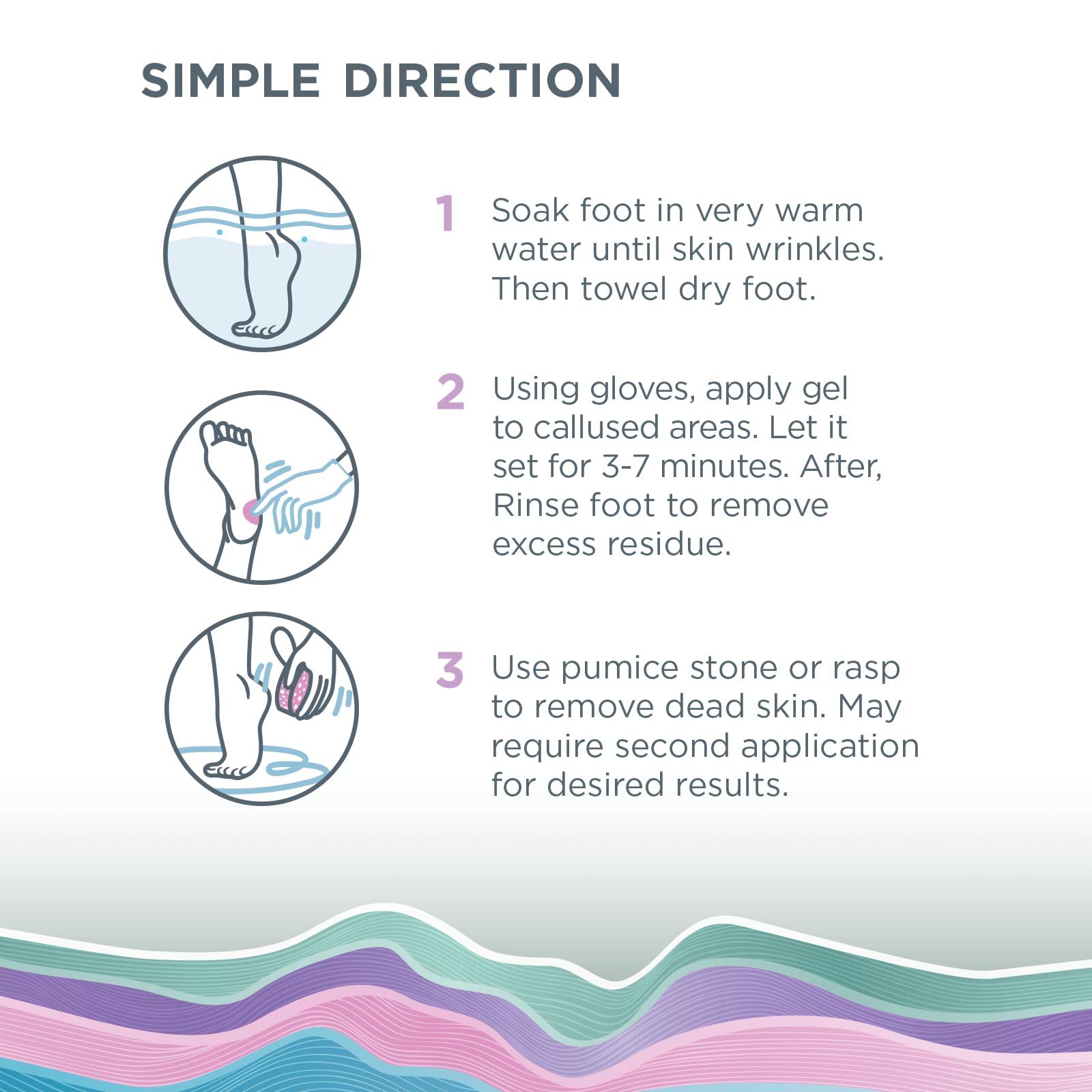 - EASY TO USE DIRECTIONS: why spend money on professional pedicure supplies when you can achieve the same results at home? Simply soak your foot in warm water, dry & apply our gel for 5-10 minutes, rinse, use a pumice stone or rasp kit - and viola! The magic of our callus remover gel is its incredible simplicity that saves you valuable time and money.