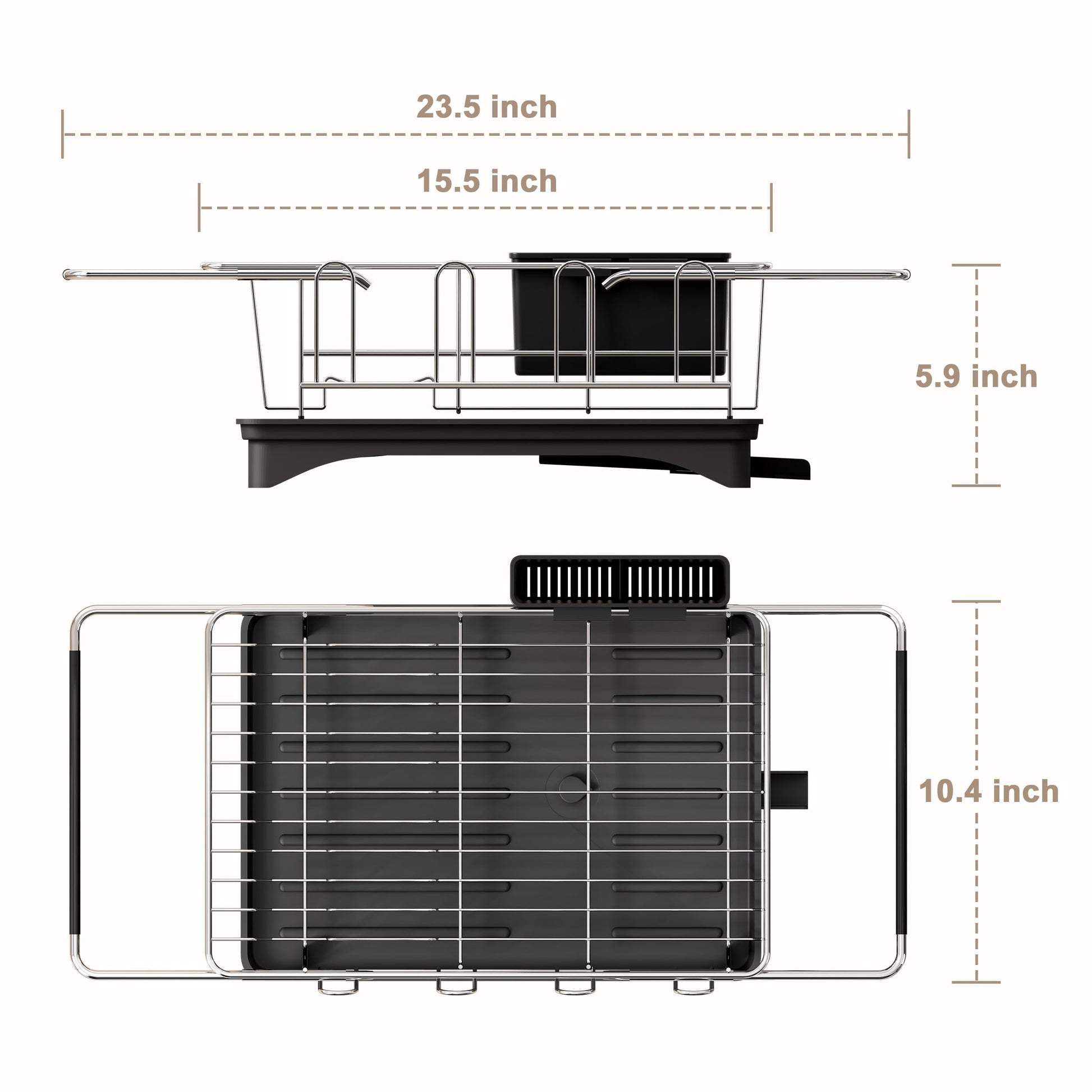 - Expandable Support Bars: The dish rack inside sink measures only 15.5”X 10.4" X 5.9", the supporting bar of the sink drying rack can be extended from 15.5" to 23.5", that allow it fits over most sinks. In addition, the over sink dish drying rack also features Non-slip rubber arms on both handles so that the rack hangs firmly in the sink. Cool kitchen gadgets for small families. (NOTE: Please check if the size of your sink and the dish rack match before purchasing.)