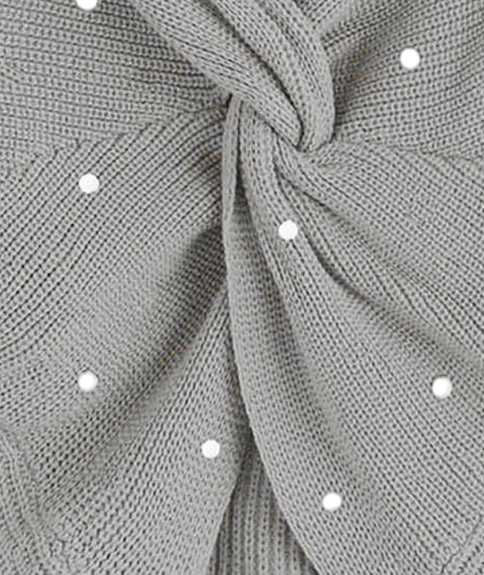Sexyshine Women's V Neck Criss Cross Backless Pearl Long Batwing Sleeve Loose Knitted Sweater Pullovers,Light Grey
