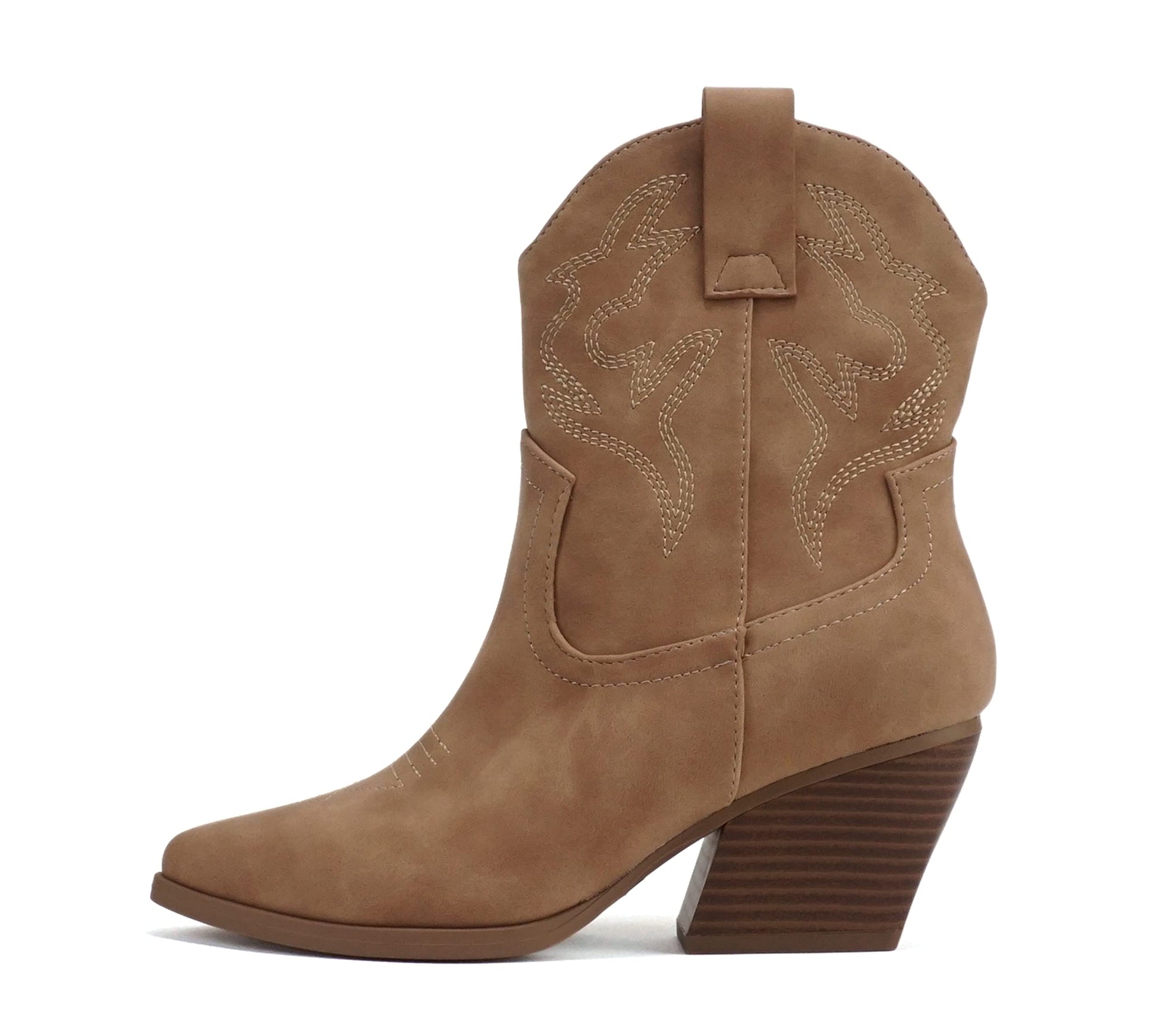 Soda “BLAZING” ~ Women Western Stitched Pointe Toe Low Heel High Top Ankle Shaft Boot Bootie (Taupe PU, us_footwear_size_system, adult, women, numeric, medium, numeric_7)