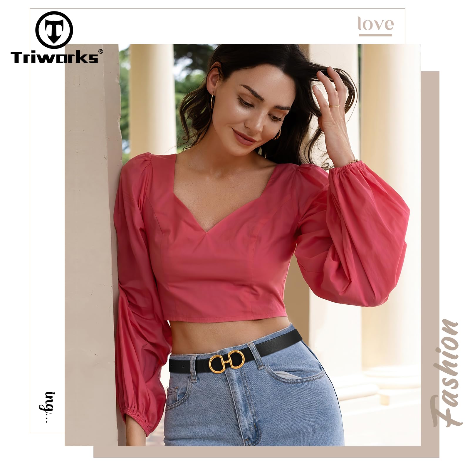 - Fashion Women Leather Belt - This women leather belt is fashion and classic. Gold buckle will decorate your waist well. Wearing this belt you can be more elegant and charming. This leather belt looks great with jeans pants dress on any occasion.