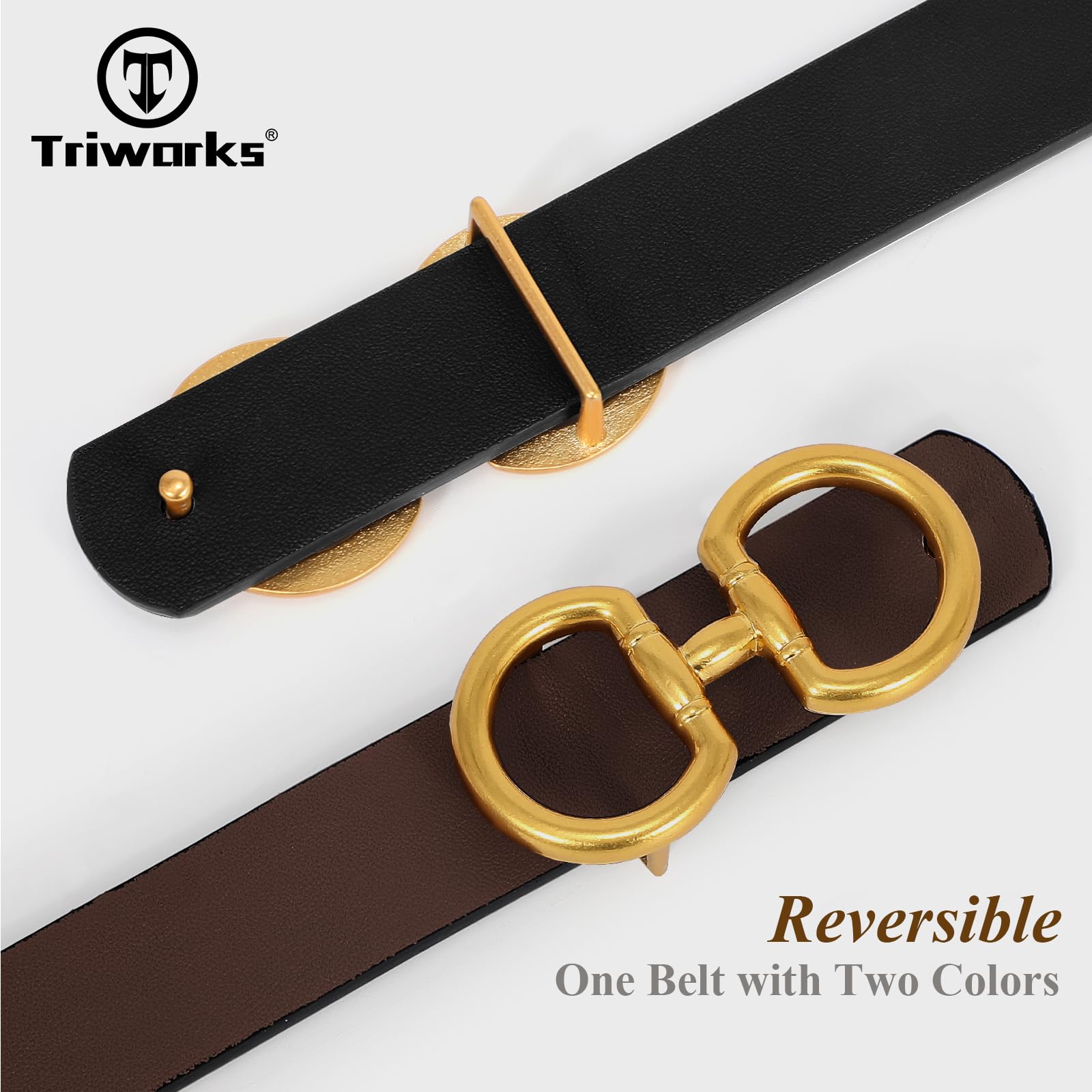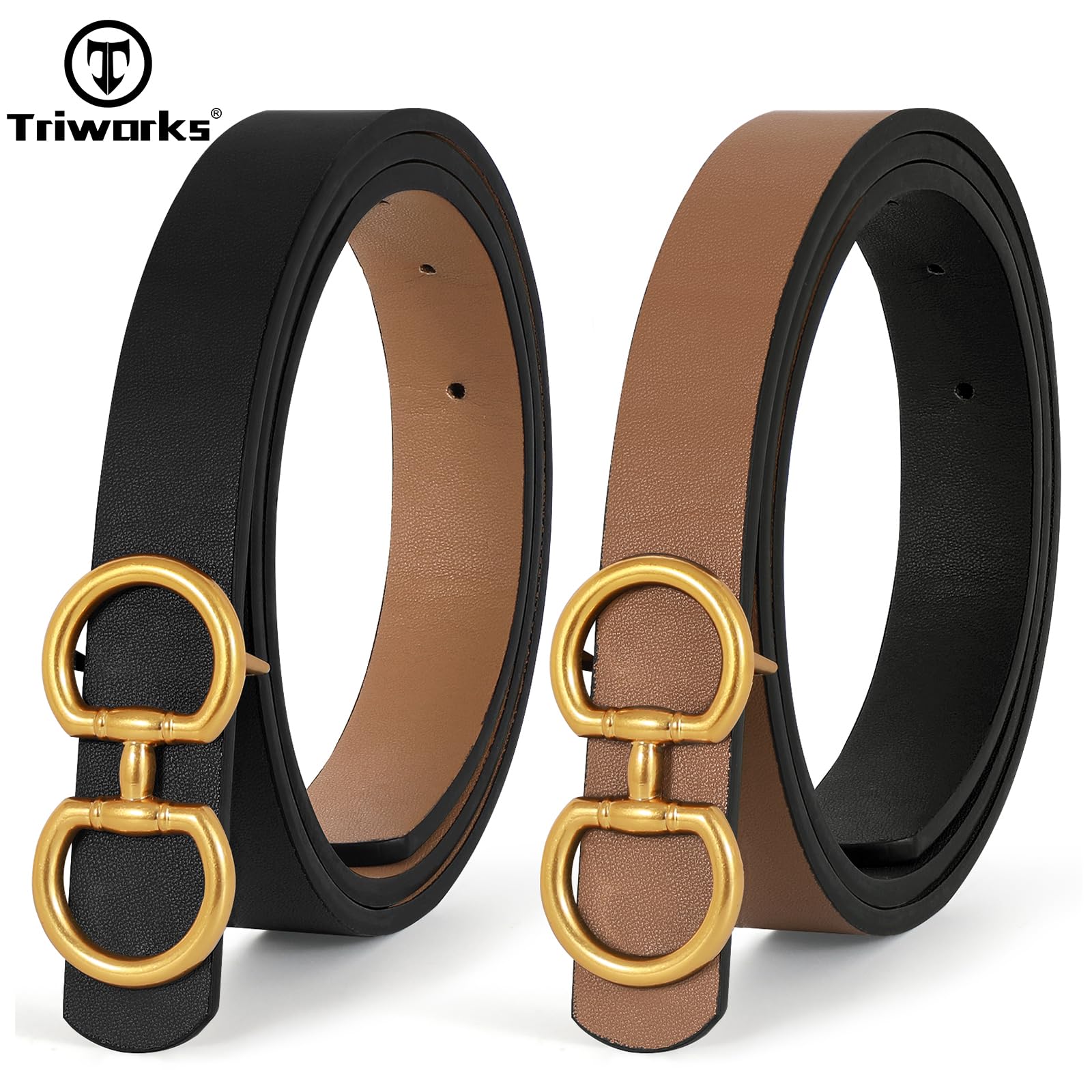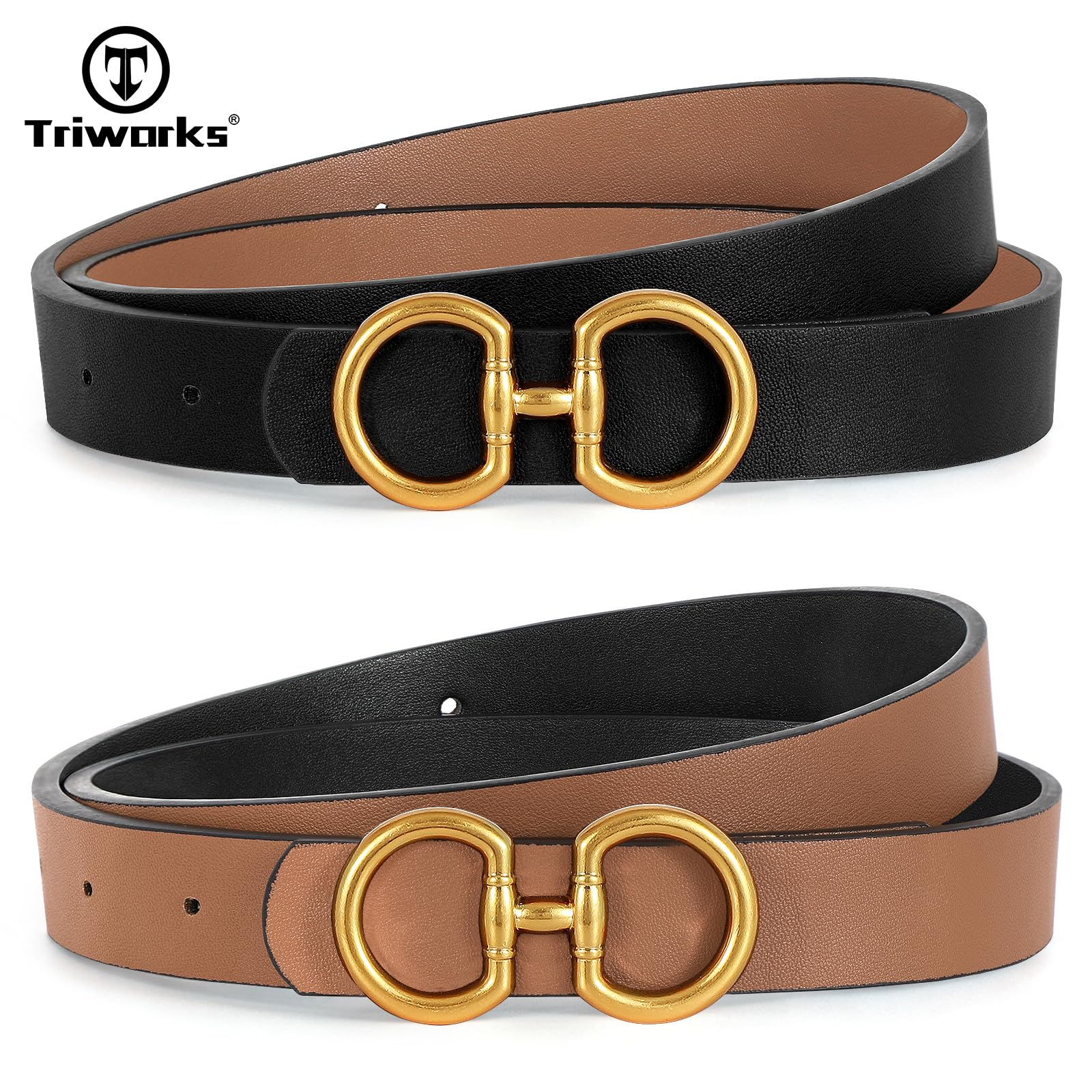 TRIWORKS Women Reversible Leather Belt for Jeans Pants Fashion Ladies Belt with Gold Buckle, A-Black+Brown, Suit for Waist 26"-32"