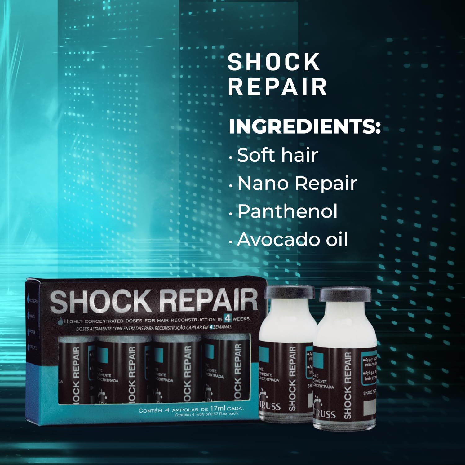 - Restore Balance - Our Shock Repair set includes four single-use ampoules. Each holds a highly concentrated dose of our premier damaged hair treatment, so you can use the product to help restore hydration, add elasticity, and promote strong hair reconstruction in just four weeks.