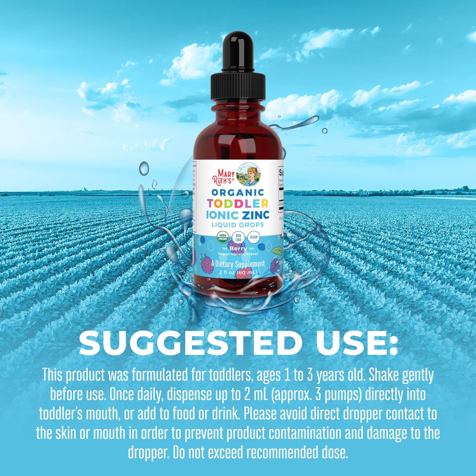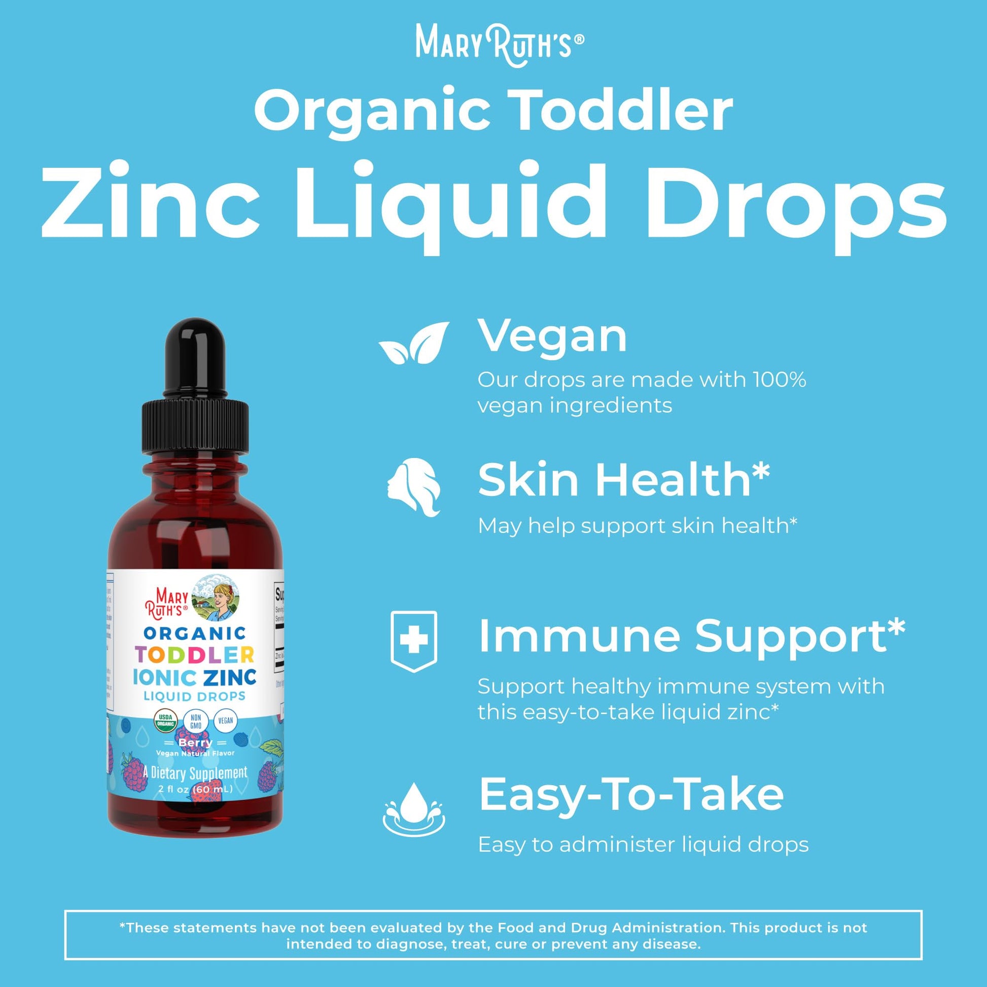 USDA Organic Toddler Liquid Zinc Drops by MaryRuth's | Zinc Sulfate | Immune Support Supplement| Skin Health | Vegan | Formulated for Ages 1-3 | Delicious Berry Flavor | 1 Month Supply | 2 Fl Oz
