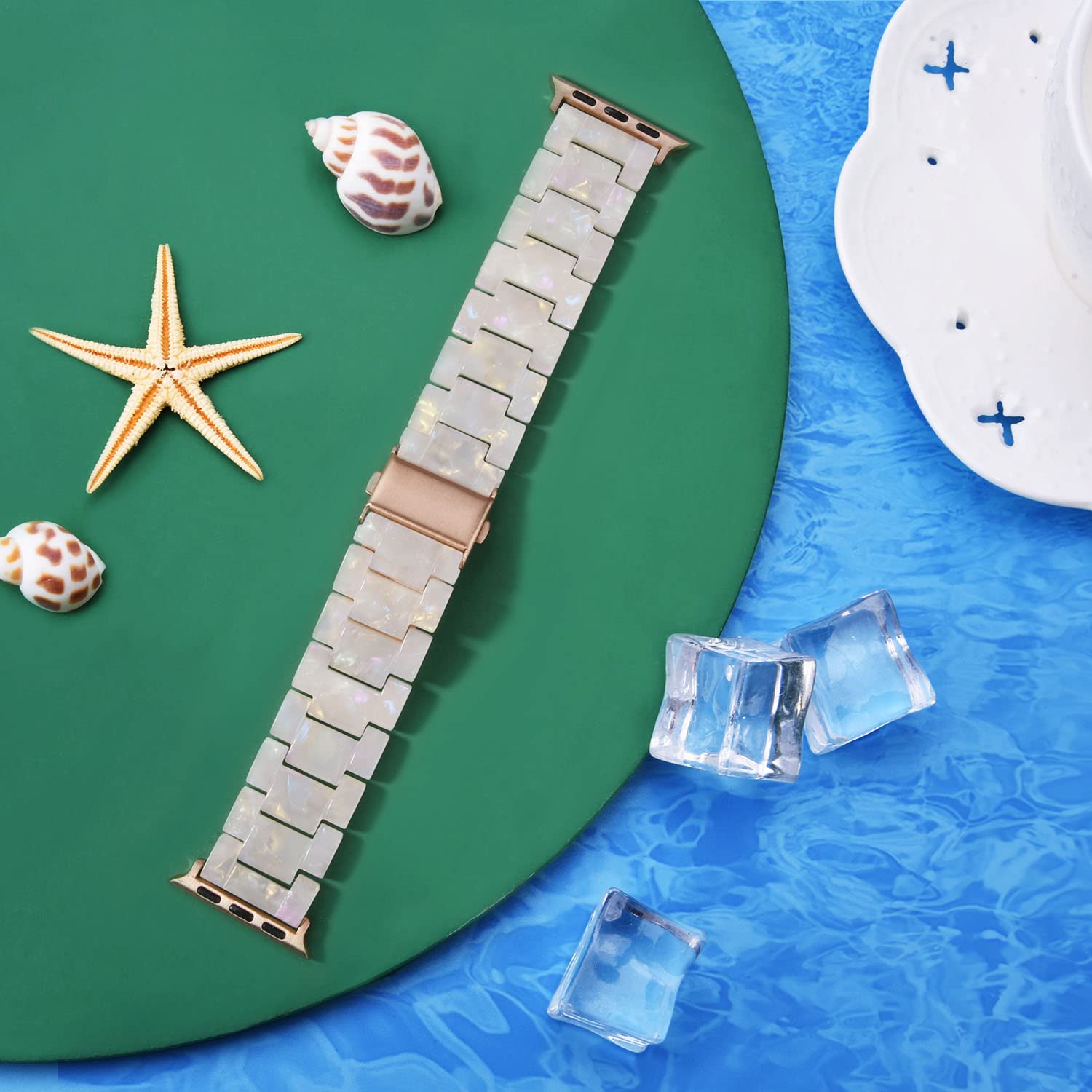 V-MORO Resin Band Compatible with Series 7/8/9/10 Apple Watch Bands 41mm/40mm/38mm/42mm Fashion Strap for iWatch Series 6/5/4/3/2/1/SE Lightweight Bracelet Wristband Replacement Women(Aurora White)