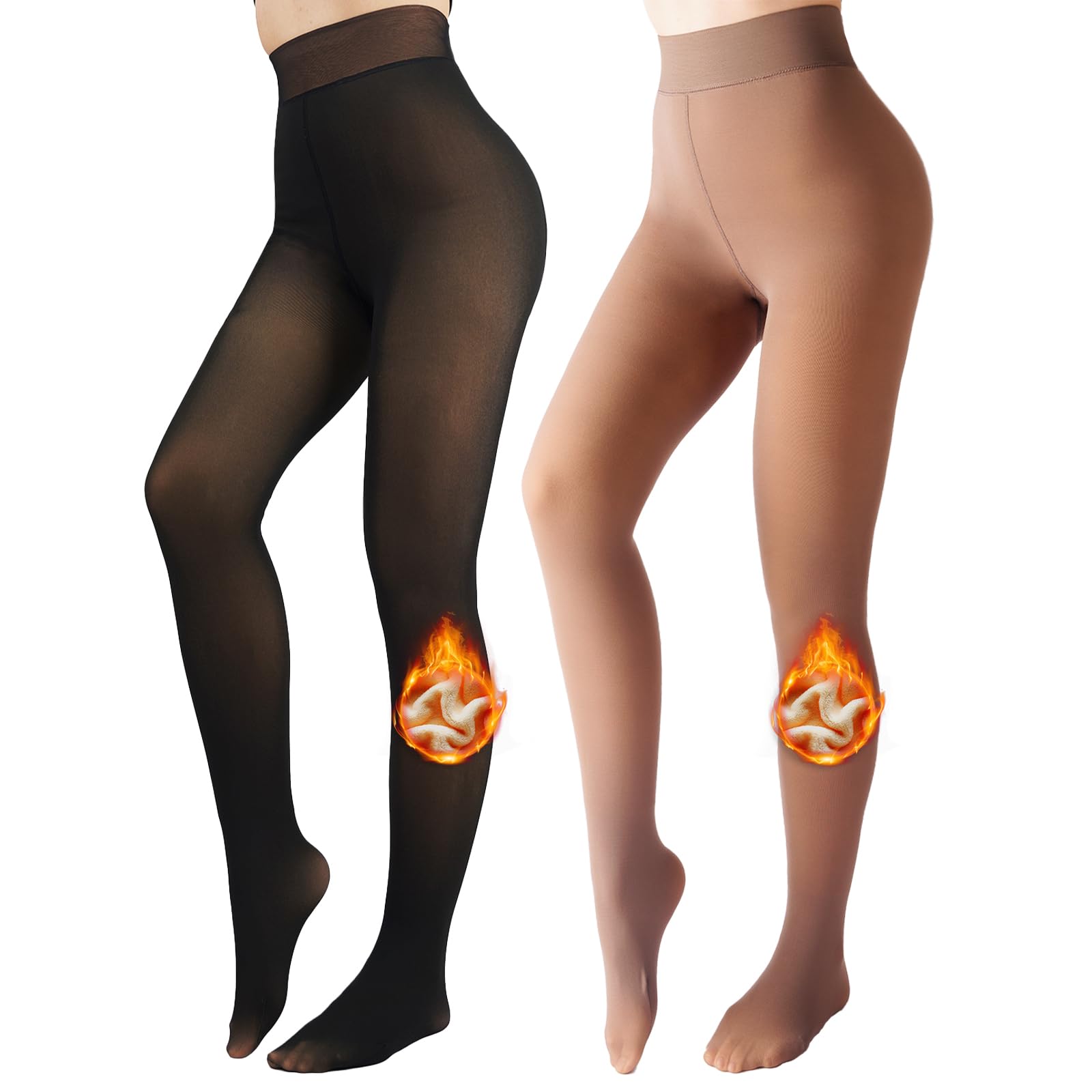 Sheer fleece lined tights look like transparent stockings,to wear under pants, shorts, skirts, tunics, and long sweaters.